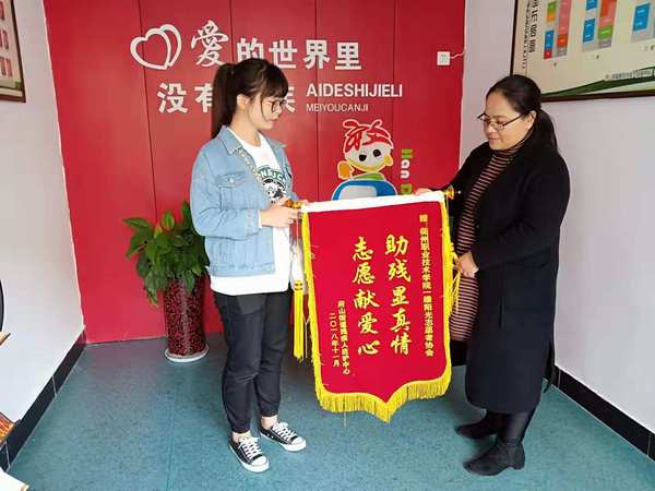 “一缕阳光”照进“憨豆儿”的人生——残疾人居家照料中心为“一缕阳光”社团赠锦旗表谢意