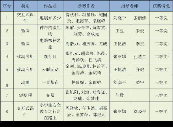 12月5日,由浙江省大学生科技竞赛委员会主办的浙江省第十七届大学生多媒体作品设计竞赛公布获奖名单,我校学生喜获一等奖2项、二等奖3项、三等奖3项(如图),本次大赛的高层次获奖率、获奖数量均创历史新高。