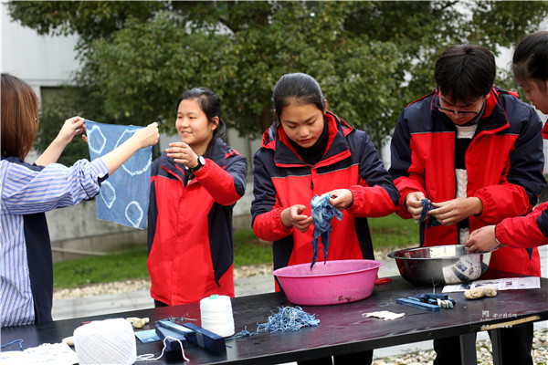 衢州市特殊教育学校的老师们还邀请大学生志愿者将大家感兴趣的扎染、应急救护等课程“搬”进衢州市特殊教育学校。