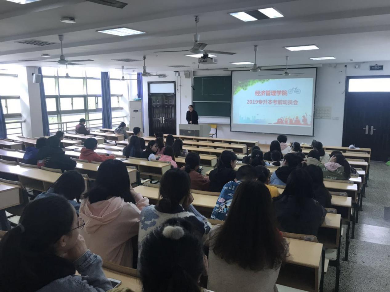 专升本考试的脚步越来越近,为激励经管学子以良好的精神面貌面对考试,4月11日中午,经济管理学院在阶西2-1召开专升本考试考前动员大会,党总支副书记覃龙飞、毕业生班主任、辅导员何昊以及2019届报考专升本的学生参加。