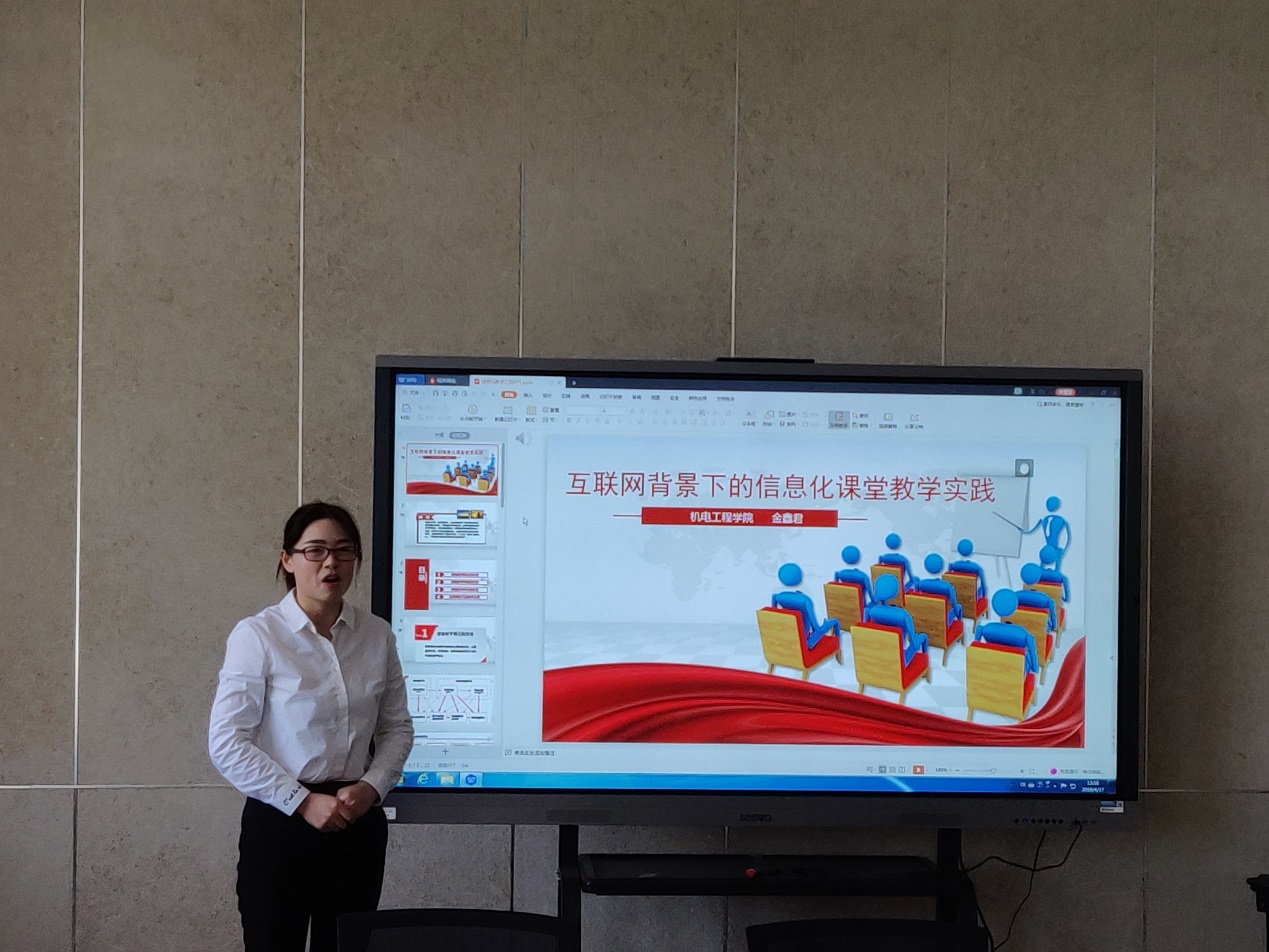 机电工程学院金鑫君老师围绕“互联网背景下的信息化课堂教学实践”主题,谈论了互联网背景下教学模式、教学管理、教学评价的改变以及信息化教学反思。