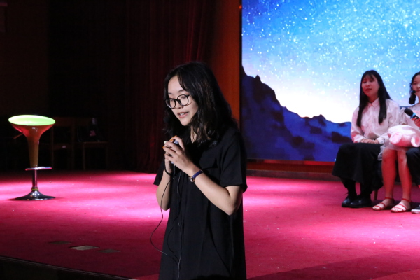 “鸟欲高飞先振翅,人求上进先读书”,330余名师生以朗读会的形式,共同迎接第24个世界读书日。朗读会以梁衡的《冬日香山》拉开序幕,在烟气氤氲中,两位朗读者身着汉服,手持团扇,伴随着高山流水的音乐,娓娓道来。紧接着,史铁生的《奶奶的星星》、顾城的《我是一个任性的孩子》等现当代国内外名家的经典选段在舞台上一一呈现,体裁涉及小说、散文、诗歌、议论文等,通过丰富多元的表达,朗读者将现场观众带入一个又一个或平凡、或浪漫的书中世界。