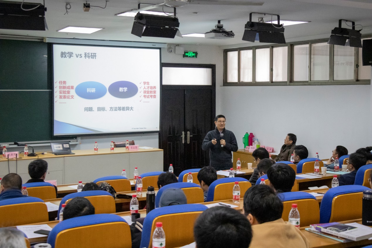 此次会议共邀请了三位专家做大会特邀报告。国防科技大学的毛新军教授做了题为《教学科研相结合,建设一流课程》的特邀报告,提出了“一流的专业和人才需要一流的课程”、“一流的课程建设需要通过教学科研相结合”、“通过教学科研相结合推动教学改革,大有作为”的观点。