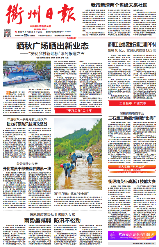 《衢州日报》 2023年6月25日 头版报道 本报讯 记者 毛慧娟 通讯员 陈琪 王晓乙