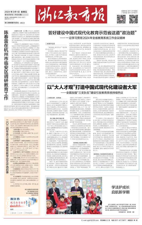 《浙江教育报》头版 2024年3月1日 报道  本报记者 朱郑远