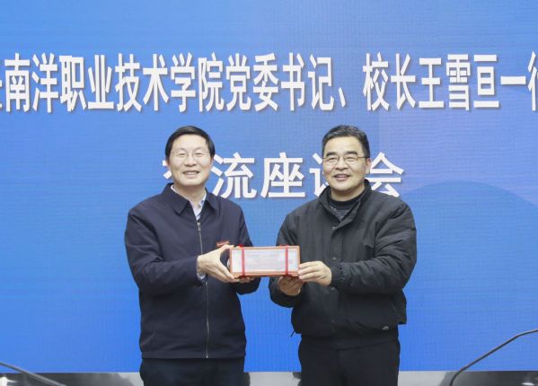 3月15日,嘉兴南洋职业技术学院党委书记、校长王雪亘,党委副书记、副校长钱长根,党委委员、副校长许松明一行来校走访调研。我校党委书记徐须实,党委副书记何百通,党委委员、副校长姚水洪陪同。