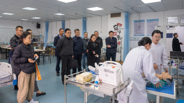 王雪亘一行实地走访了我校共富学院、工业互联网实训中心、医护康养实训中心、四省边际大健康公共实训中心,详细了解我校办学特色、产教融合、服务地方发展及“双高”建设发展战略目标等情况。