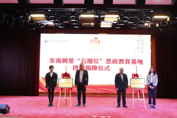 孔庆红、许金友、齐睿婷、鲁艺文共同为东南阙里“石榴红”思政教育基地揭牌。
