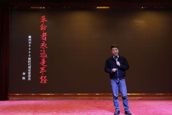 衢州市“8090说”电视宣讲大赛金话筒奖获得者李陈作示范宣讲《革命者永远是年轻》。