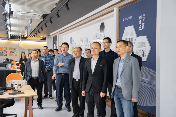 开幕式后,领导嘉宾们参观了我校大学生创业园,观摩直播电商课程。