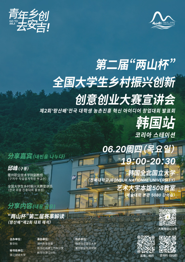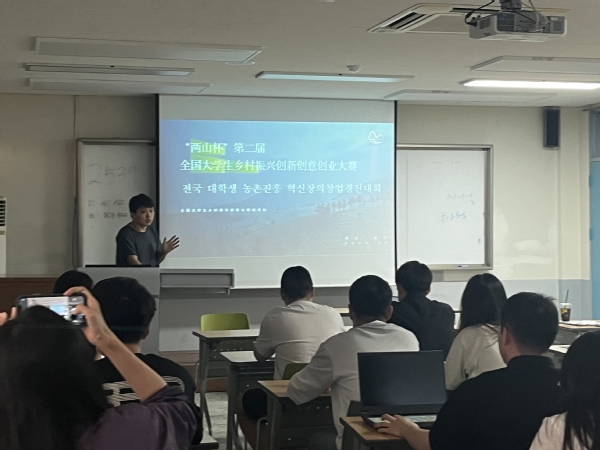 6月20日,由新华通讯社主办的第二届“两山杯”全国大学生乡村振兴创新创意宣讲会在韩国全州全北国立大学举行。艺术设计学院教师邱峰作为特邀嘉宾介绍了大赛实施情况和分享了我院学生参赛作品案例。