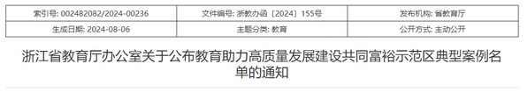 喜报!我校申报项目成功入选浙江省教育厅教育助力高质量发展建设共同富裕示范区典型案例