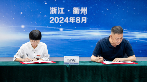 在衢州保姆提质赋能推进会上,我校与重庆市农广校签订农民素质培训合作协议。徐浪静、杨召军代表双方签约。