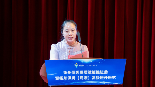 徐利水讲话,并宣布本次培训班开班。他表示,希望通过举办衢州保姆(月嫂)高级班开班式,为各位学员带来属于保姆这份职业的社会认同感和荣誉感。本次培训班学员报名要求高,各方面的标准严格,各位学员定能学有所得、学有所成、学有所用,让衢州保姆成为市场上的金字招牌。衢州保姆学院是每位学员的家,希望学员们通过培训增强对岗位的归属感,认真学习,顺利考取保姆月嫂的技能等级证书,相关部门和企业将为学员们做好就业推荐服务。