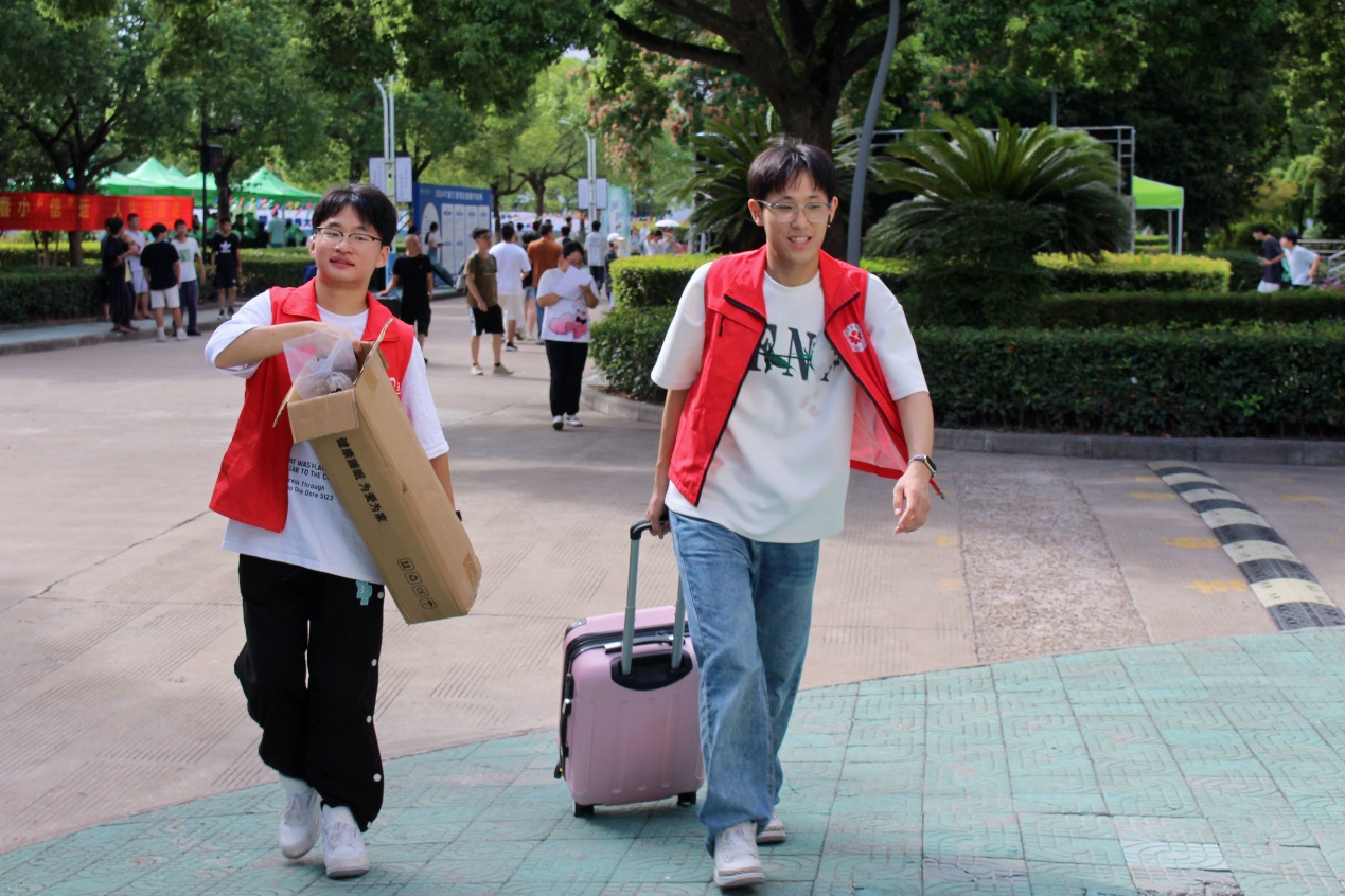 随着新生陆续踏入校园,早已守候在校门口及宿舍楼下的志愿者们,身着红马甲,笑脸相迎,热情给予帮助,用实际行动,诠释“奉献、友爱、互助、进步”的志愿精神。无论是帮助新生搬运行李,还是指引新生报到流程,志愿者们都耐心细致、不辞辛劳。烈日下,他们忙碌的身影成为了一道道亮丽的风景线,也让初来乍到的萌新们,感受到了来自学长学姐的温暖与关怀。