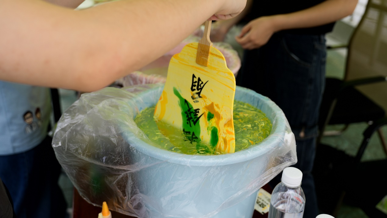 新生漆扇DIY活动现场人气火爆。看着一枚枚色彩斑斓的手工漆扇,在自己手中诞生,新生们笑逐颜开。凝聚着非遗文化和个性创意的小小漆扇,也将为新生们即将展开的大学生活,平添一抹亮色。