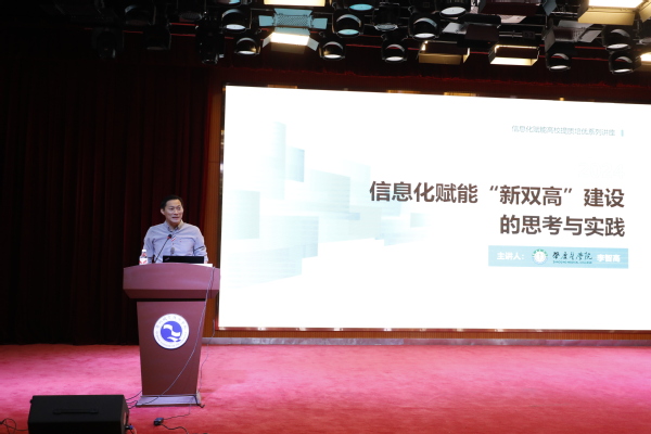 在数字化时代背景下,信息化已成为推动职业教育现代化的重要引擎。9月21日上午,职业教育信息化专家、肇庆医学院人文学院副院长李智高应邀来校作《信息化赋能“新双高”建设的思考与实践》专题讲座。校党委书记徐须实,党委副书记、校长吕延文,党委副书记何百通,党委委员、副校长徐浪静,党委委员、宣传部长孔庆红,党委委员、组织部长周帅出席,党委委员、副校长姚水洪主持。全体中层干部及教师代表300余人参加。