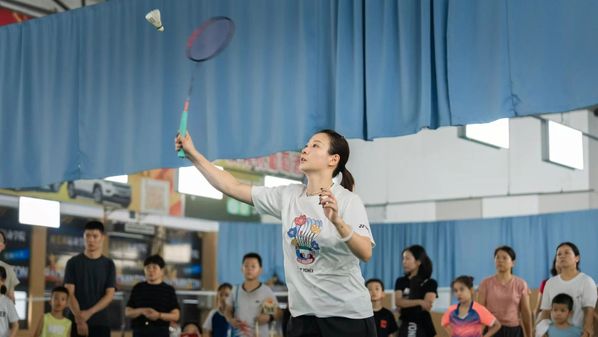 黄雅琼讲授了羽毛球运动知识,进行了羽毛球技术示范、实战模拟、答疑交流等活动。