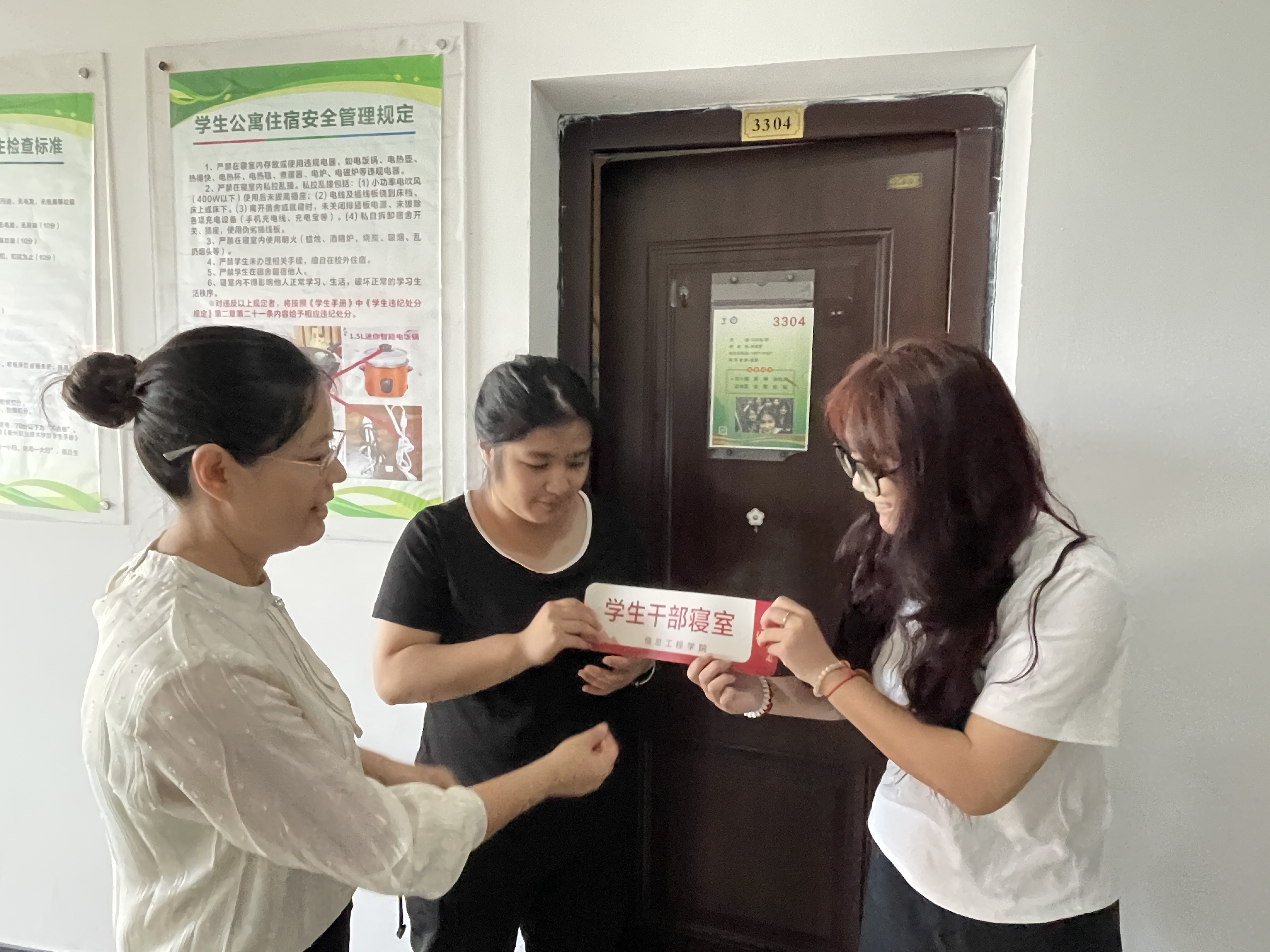 “学生干部寝室”的授牌能够使学生干部更好地规范自身行为,带头当表率,以身作则,积极争创星级文明宿舍;带头守纪律,严于自律,守好宿舍安全红线底线;带头勤学习,遵守作息,宿舍成员共成长齐进步。