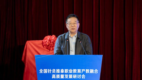 理事长单位代表、我校党委书记徐须实作表态发言。他表示,学校将把高质量建设全国针灸推拿职业教育产教融合共同体作为重大项目加以推进,主动扛起理事长单位职责使命,和共同体成员单位齐心协力,全力以赴办好针灸推拿、中医学等专业,积极探索产教融合创新模式,强化教学团队能力建设,全力培养高素质中医针灸复合型技术技能人才,助力中医康养产业的高质量发展。