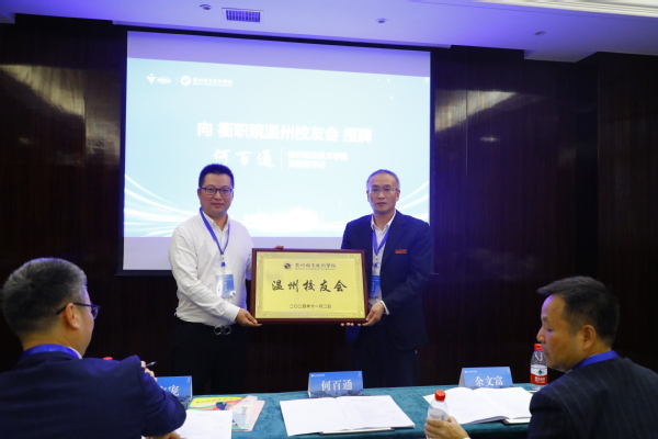 会上,校党委副书记何百通对温州校友会的成立表示祝贺并致辞。他指出,在广大校友鼎力支持下,学校建设发展取得长足进步。特别是近年来,学校围绕创“双高”、强服务、育人才工作主线,深入实施“六个一批”服务地方发展专项行动,深化复合型技术技能人才培养改革,推动学校事业取得历史性成就、发生历史性变革,学校高质量发展迎来光明前景。他强调,长期以来,广大校友身在四方却始终心系母校,以各种方式反哺母校、支持母校发展。广大温州校友扎根地方,在各自战线上建功立业,展现衢职的风采,发扬衢职精神,服务温州地方发展。温州校友会的成立,是母校情的延续、校友情的汇聚、跨地域的联合,开创了校友与母校、校友与校友情谊相连、发展与共的新路径。他希望校友们多联系、多走动、常回母校看看,用大家的精诚合作,助力母校谱写事业发展新篇章。