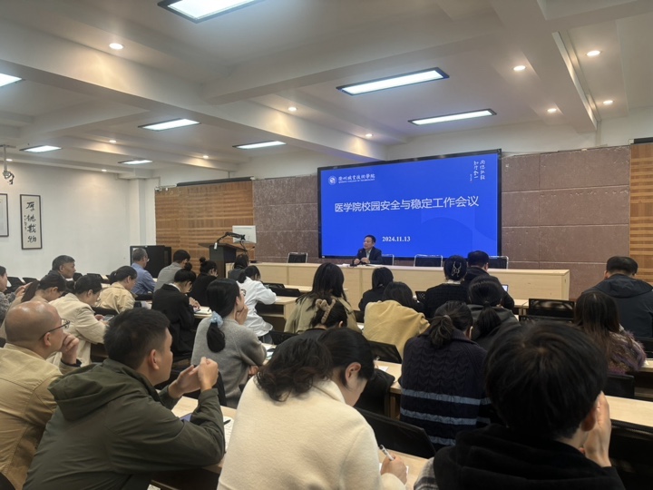 11月13日,医学院召开校园安全与稳定工作会议,会议由党总支书记余文富主持,医学院班子成员、全体教职工参加会议。