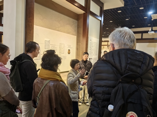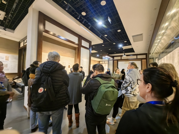 留学生们走进衢江区中医院杨继洲针灸博物馆,感受针圣故里的文化魅力,体验杨继洲针灸文化精髓,领略小银针里的大智慧。在博物馆序厅,留学生们体验学习了杨继洲针灸非遗文化。大家认真观看了《针圣故里》《针灸圣地》两部影片;在针道源流板块,学员们对针灸发展的历史渊源有了清晰的了解;在“三针而愈”的场景还原处,听闻石学敏院士在这里为联合国第八任秘书长潘基文扎针时,学员们跃跃欲试,都想身临其境亲身尝试;在针灸铜人像前,学员们仔细观摩,详细询问当时医官院考试铜人覆黄蜡针刺出水的场景;面对展柜里悬挂着的三幅清代《铜人明堂图》以及二十四个版本的《针灸大成》,学员们露出不可思议的神情,纷纷感叹中国古人的智慧和中医药的神奇。