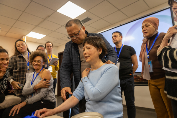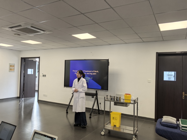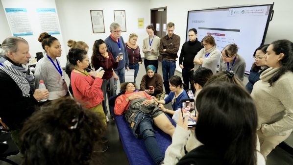 在过敏性疾病的针灸治疗(花粉、食物过敏)课程上,留学生们了解到了针灸在治疗过敏性疾病方面的优势。他们认真做着笔记,“大椎、风池等穴位,具有调节气血、温经通络功效,可以缓解皮肤瘙痒、鼻塞、打喷嚏等症状。中脘、足三里等穴位的针灸,能够调节脾胃功能、增强免疫力,对于食物过敏引起的皮炎有效。”
