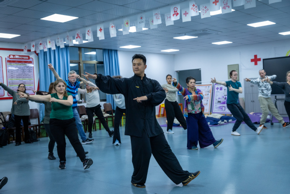 在传统中医体育保健课上,五禽戏、八段锦因其独特的动作设计深受留学生们偏爱。伴随着轻柔的音乐,大家有模有样地模仿虎、鹿、熊、猿、鸟五种动物的动作练习着,时而伸展双臂,如大鹏展翅;时而弯腰低头,似猛虎下山...