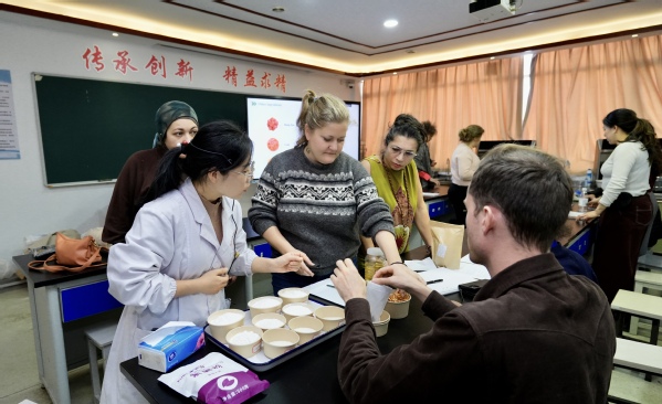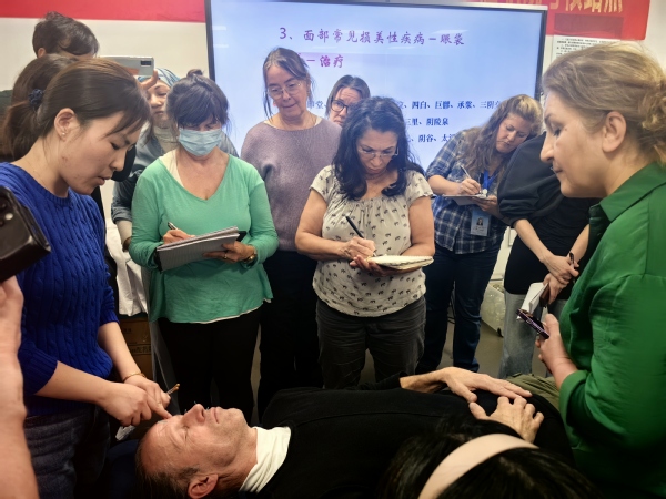 在传统中医减肥、中医药膳养生、传统中医美容课程上,女留学生们对针灸美容,埋线减重热情高涨。在针灸减肥环节,中医师选取了具有调节内分泌、促进新陈代谢、抑制食欲等功效的穴位进行针刺,帮助留学生调节身体机能,达到减肥的效果。