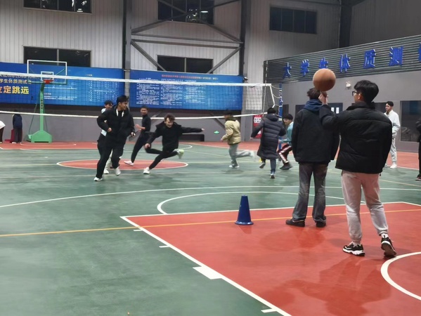 折返跑上篮更是技术与速度的考验。参与者们如离弦之箭般飞驰而出,在折返点迅速转身,向着篮筐全力冲刺上篮。用脚猜拳环节回顾童年的方式让大家忍俊不禁。同学们围坐一圈,以脚代手,出拳、比布、亮剪刀,欢闹声此起彼伏。